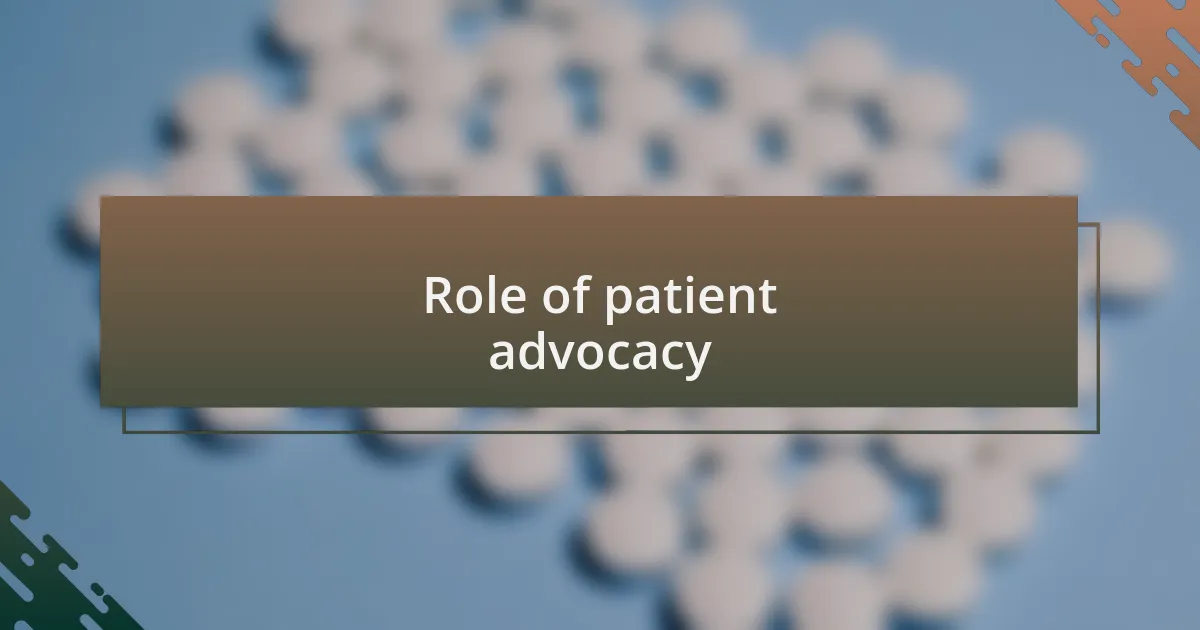 Patient advocacy plays a pivotal role in ensuring that the voices of those receiving care are heard and respected. I vividly recall a conversation with a patient who expressed frustration over not being included in their treatment decisions. It struck me then how crucial it is for patients to have not just a say, but also the resources to understand and discuss their options. This experience reinforced my belief that advocacy is about giving patients agency over their health journeys.